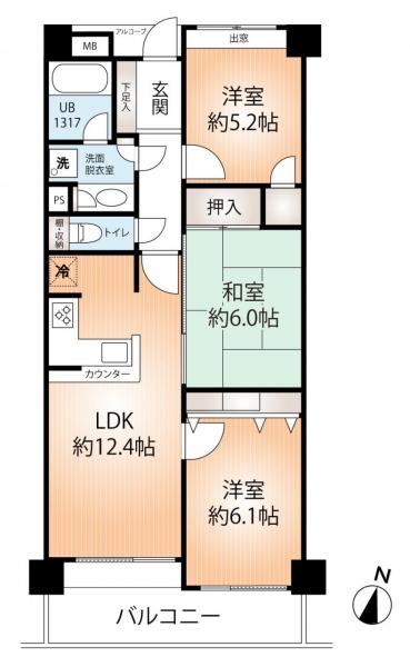 専有面積 65.44m²